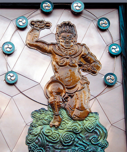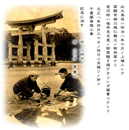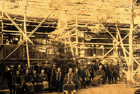 建築工房 菅 板金 先代社長初代、豊七は1914年建築家伊藤忠太博士の設計による、亀岡文殊堂再建工事の際、当時勤めていた相田木羽材木店の現場責任者として屋根工事を担当していた。